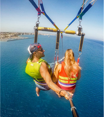 Touch the clouds with Parasailing, experience the blasting speed and power of a Sea Doo Jet Ski,